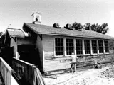 Patterned after a typical one-room schoolhouse, the building was a temporary classroom for Meridian Rural High School. In 1937, it was moved to the corner of Pine and Meridian and served as a classroom before spending 30 years as a storage facility. It was restored in 1993 as a one-room schoolhouse for the City. Longtime Meridian resident and former teacher, Betty Kussler, was the curator for the building for many years. She would open the building every Saturday for public tours. The Meridian School District now maintains the building. It can be opened by special request for school tours. The building houses artifcats, photos, and many stories for guests to enjoy while they journey back in time.