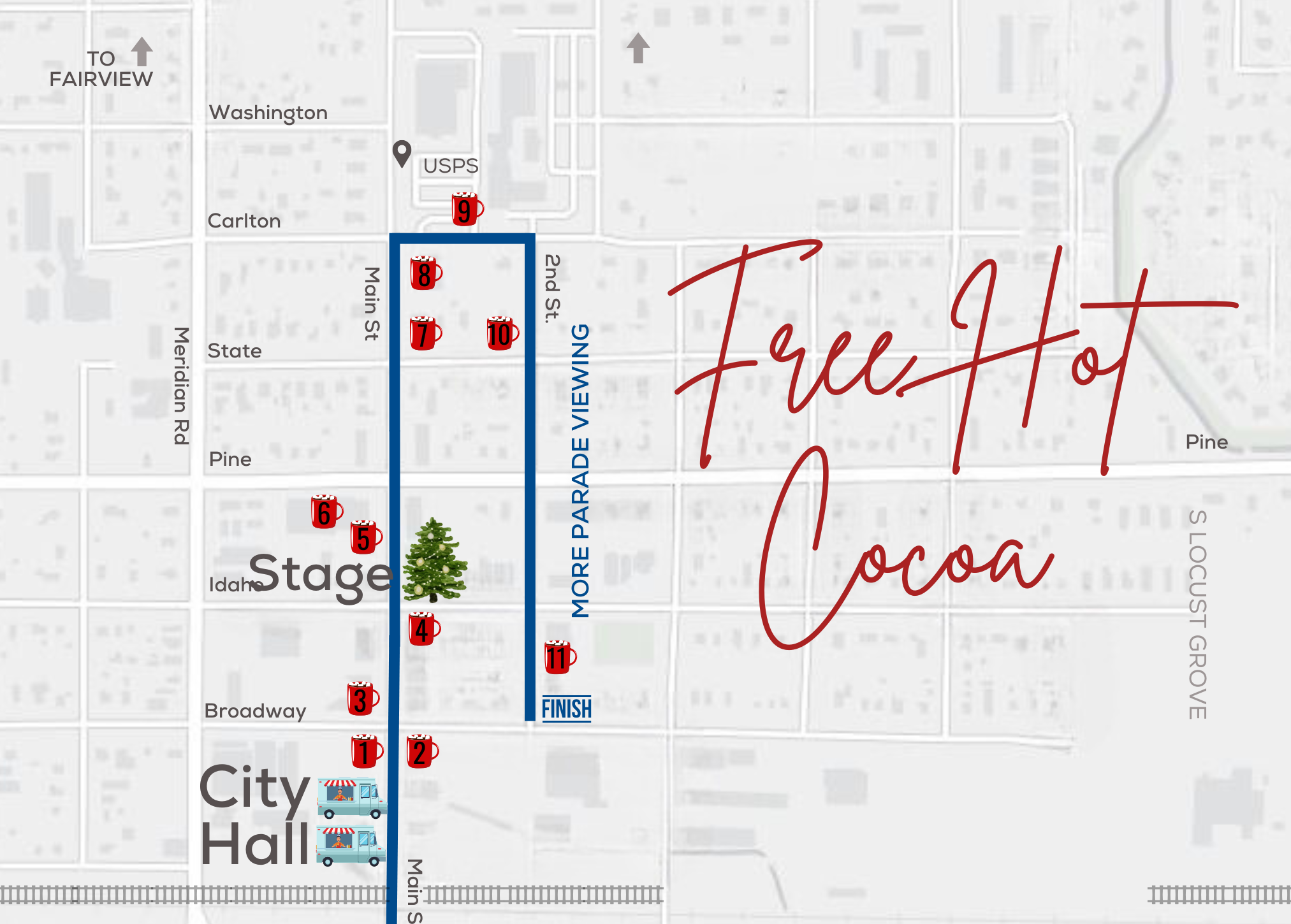 Look for these business and organizations on the parade route who are cooking up cocoa and giving it away to warm hands and hearts.